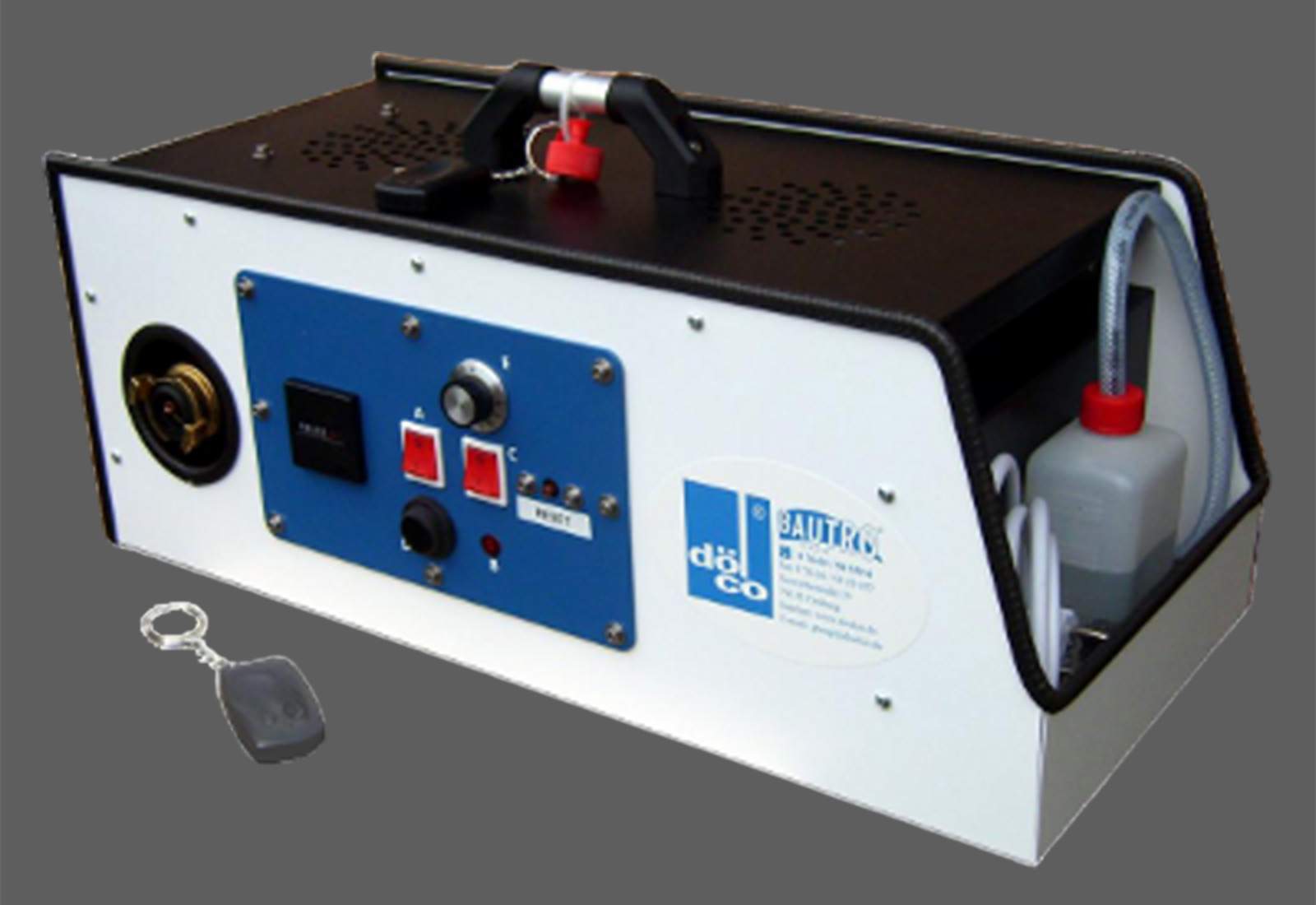 - la technique d'injection de fumigène, à partir d'un surpresseur, sous l'étanchéité. La fumée ressort aux endroits défectueux. Cette technique est régulièrement privilégiée car elle est rapide et non destructive.